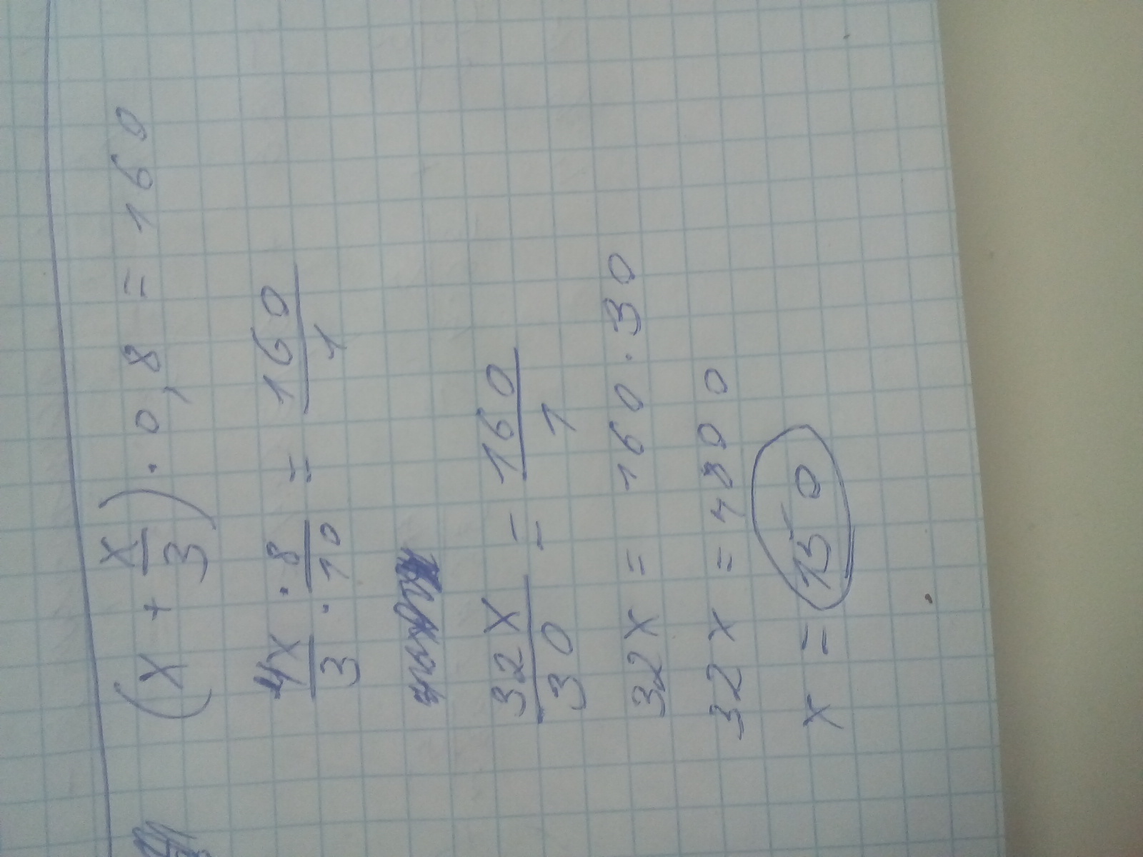 Саша задумал число. Сначала он увеличил это число на его треть, потом полученное число уменьшил на 20% и получил число 160. Какое число задумал Саша?