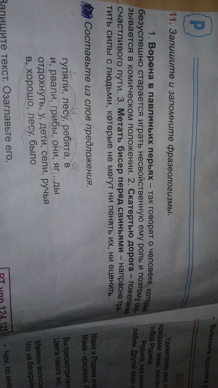 Ребята гуляли в лесу. Они рвали грибы и ягоды. Дети сели отдохнуть у ручья. Хорошо было в лесу.