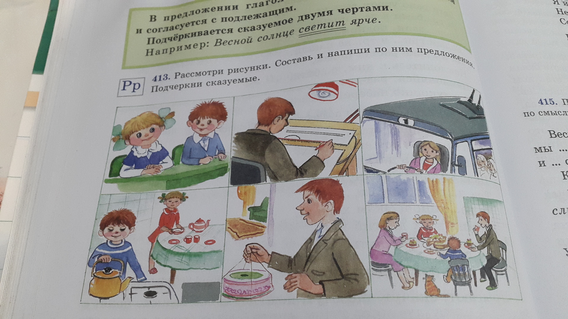 мама ехала с работы.Отец рисовал чертежь.Дети решили помочь маме приготовить чаепитие.Отец принес торт.И вот когда было все готово все сели пить чай