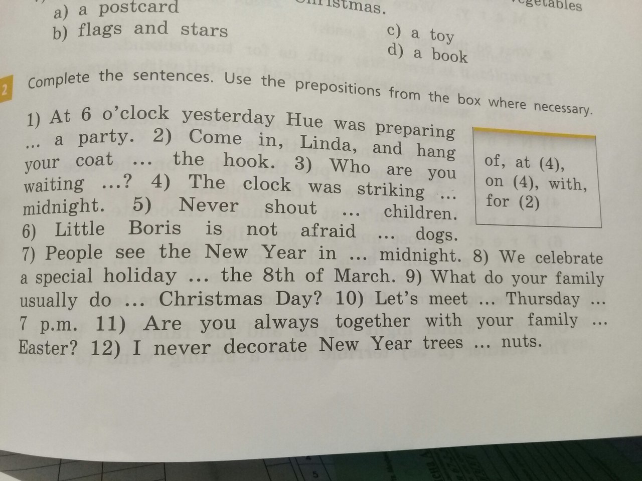 1 for 2 on 3 for 4 at 5 at 6 of 7 at 8 on 9 on 10 on, at 11 at 12 with