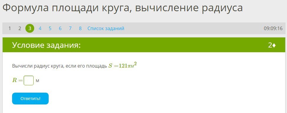 R²=121π/π=121(м²)