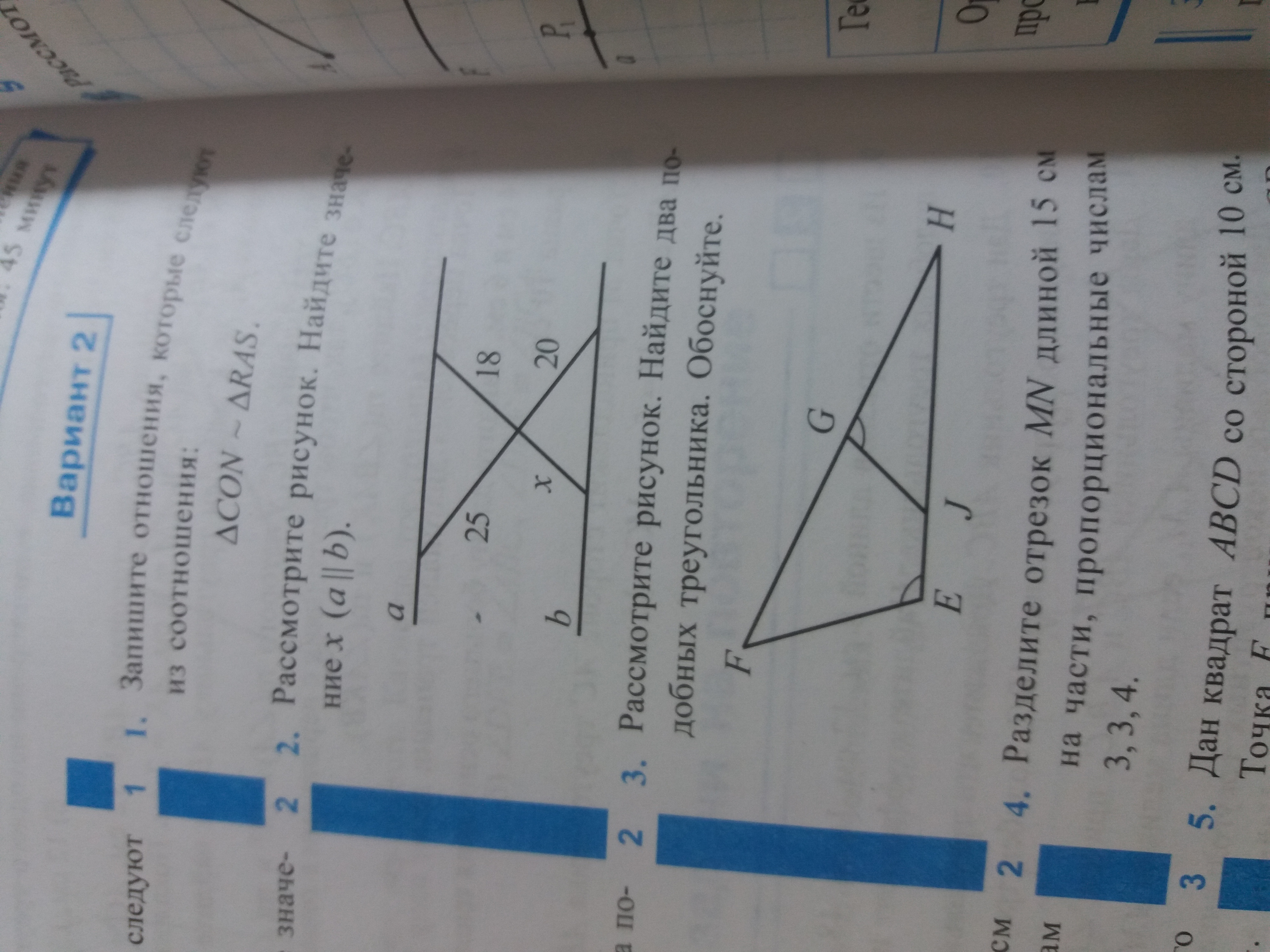 <E=<G и <H-общий,значит ΔFEH∞ΔJGH по 2 равным углам