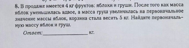 изначально было 2 кг яблок и 2 кг груш