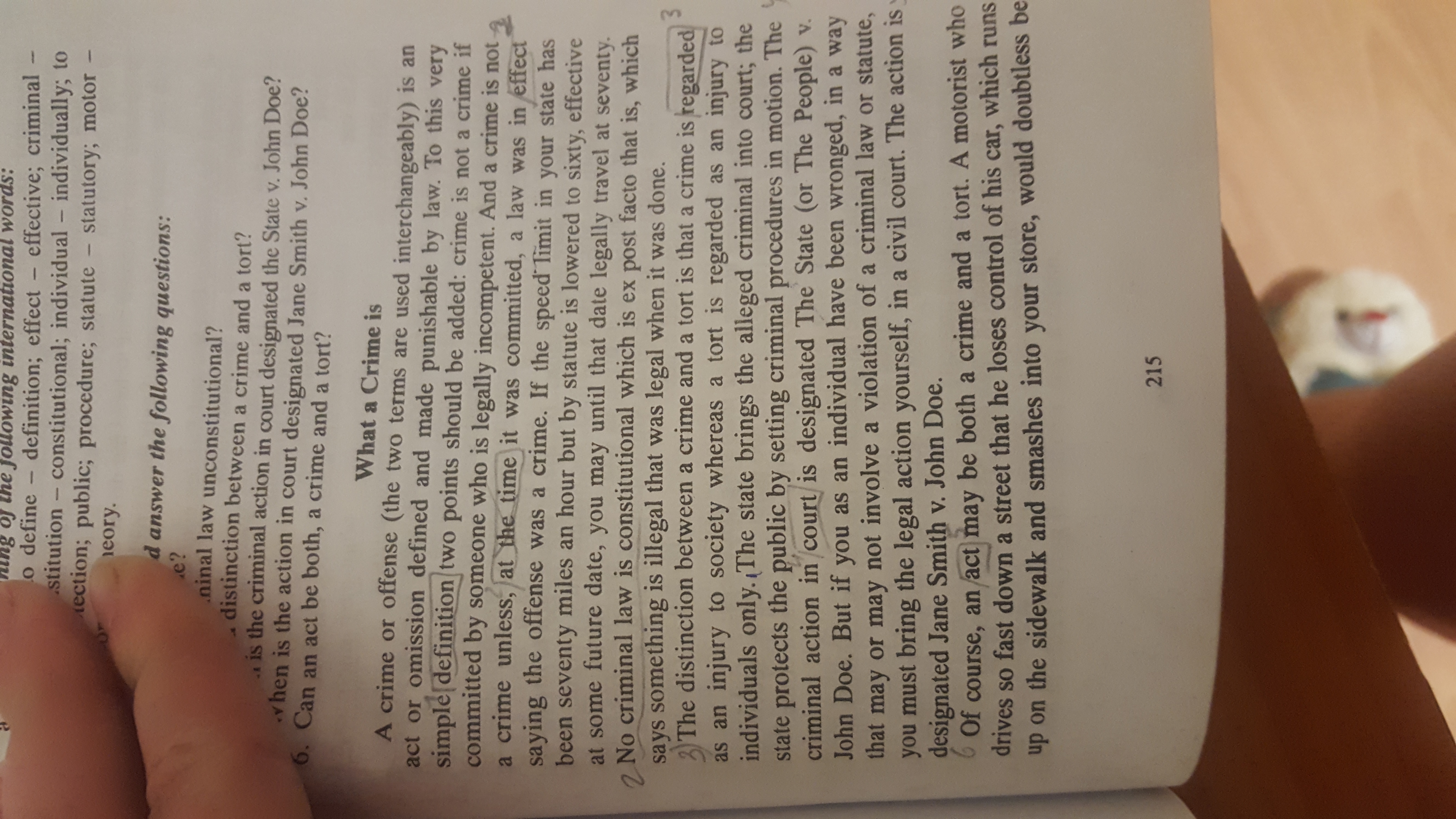 A crime and offense are alternative words, which determine an act or omission punished by law.Two points should be added : an act made by someone who legally incompetent is not a crime. Crime is not a crime except situation at the time it was committed, this act was determined as a crime by the law. For example: the speed limit in your state is seventy miles an hour. It will be lowered to sixty by statute at some date. You can continue legally travel at seventy, until that date. Criminal law is changeable. No law can say that something is illegal if that was legal when it was done.The difference between crime and tort is that crime is related for actions harm to society whereas a tort is regarded as an injury to person. The state brings the suspected into court. The state protects the public by setting criminal process in motion. If someone has damaged you either you may or may not involve in a violation of law, you must bring the legal action in a civil court.Of course, an act may be both a crime and a tort. If you drive so fast that lose control of your car, and ruin someone's store, it is double and crime and tort.