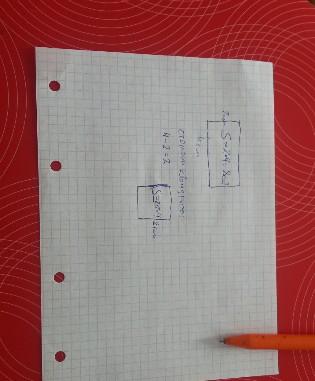 начерти прямоугольник со стороной 2 см и 4 начерти квадрат сторона которого равна разности сторон прямоугольного.сравни их площади
