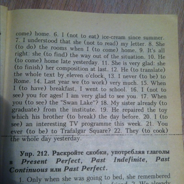 Раскройте скобкт употребляя глаголы в present perfect, past indefinite, past continuous или past perfect