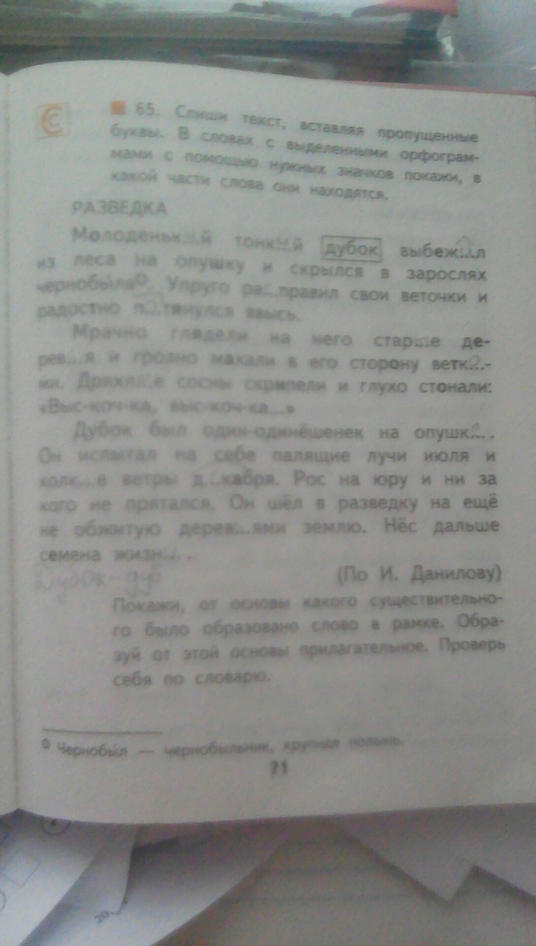 Молоденький,тоненький дубок выбежал из леса на опушку и т. д.