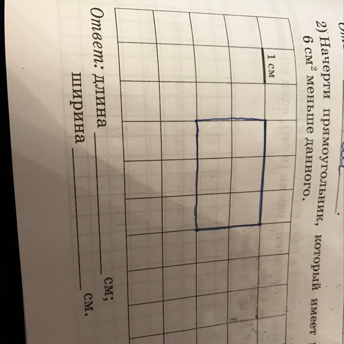 Начертил прямоугольник который имеет площадь на 6см в квадрате меньше данного. Дам 15 баллов