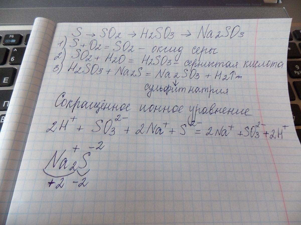 Назовите все вещества. Для реакции 2 укажите тип хим реакции. Для реакции 3 составьте полное ионно-молекулярное уравнение. Определите степени окисления в сульфате натрия.