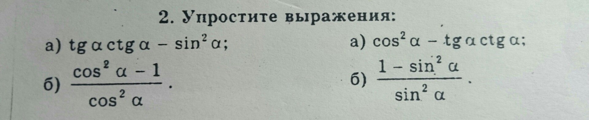 a) tgα*ctgα-sin²α=sinα*cosα/(cosα*sinα)-sin²α=1-sin²α=cos²α.