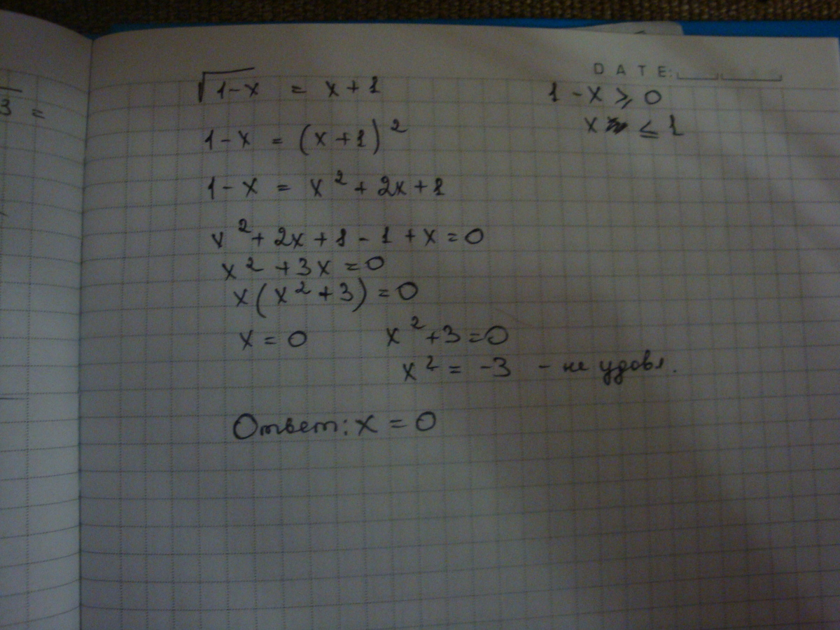 1-х больше либо равно нуля(подкоренное выражение должно быть неотрицательно)