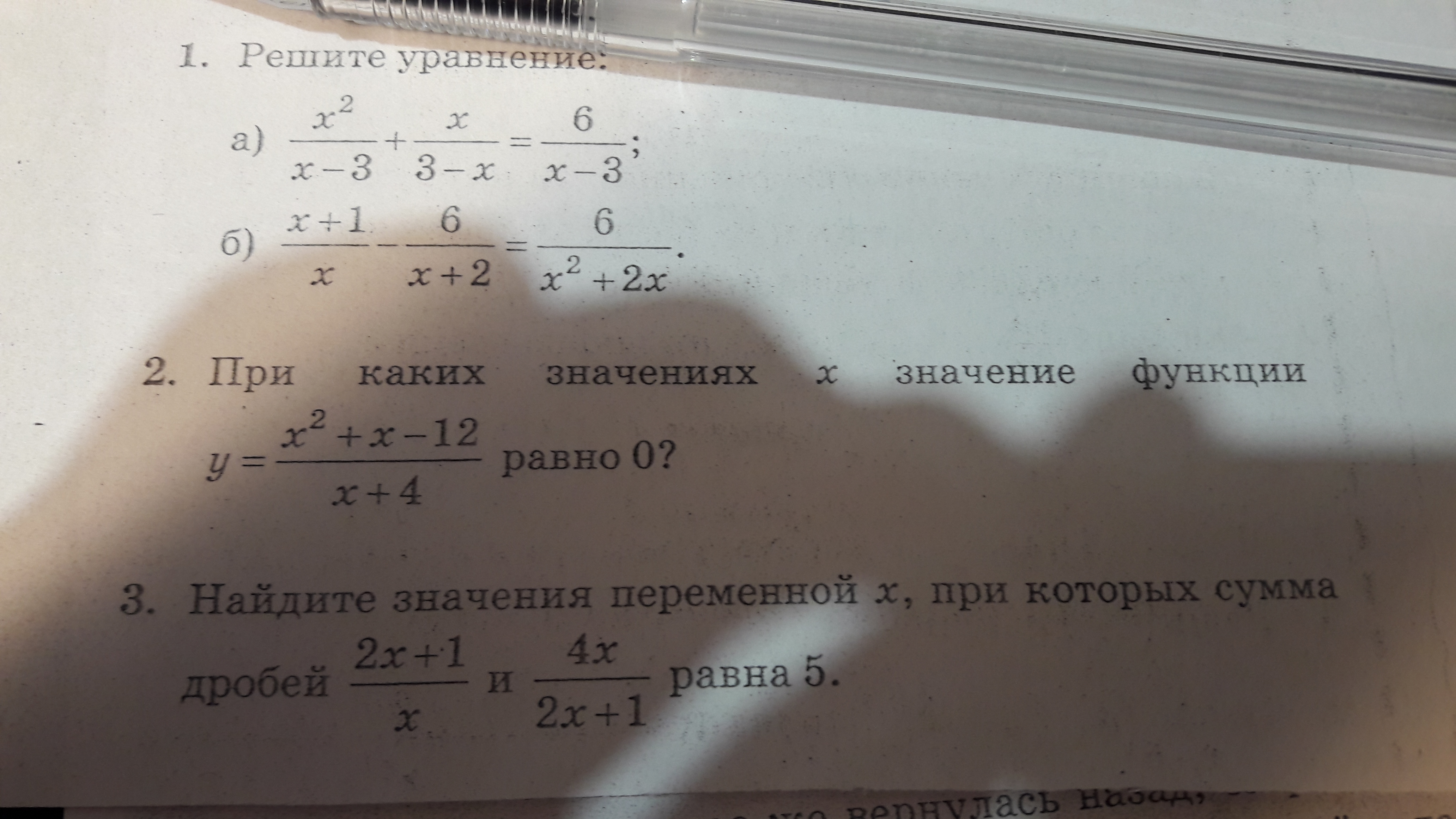 При х=3 т.к. в числителе будет 3("2)+3-12=9+3-12=0