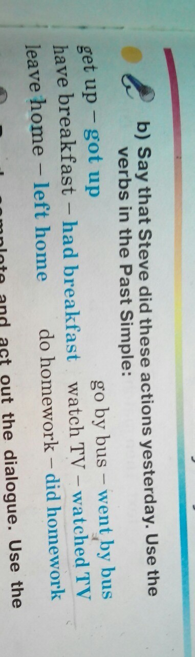 Yesterday Jane got up at 6 o'clock. At 6.30 she had breakfast. At 7 o'clock Jane left home. At 7.30 she went to the school by bus. After school she went home at 12.00. And Jane watched TV till 14.00. After this she did homework at 15.00.