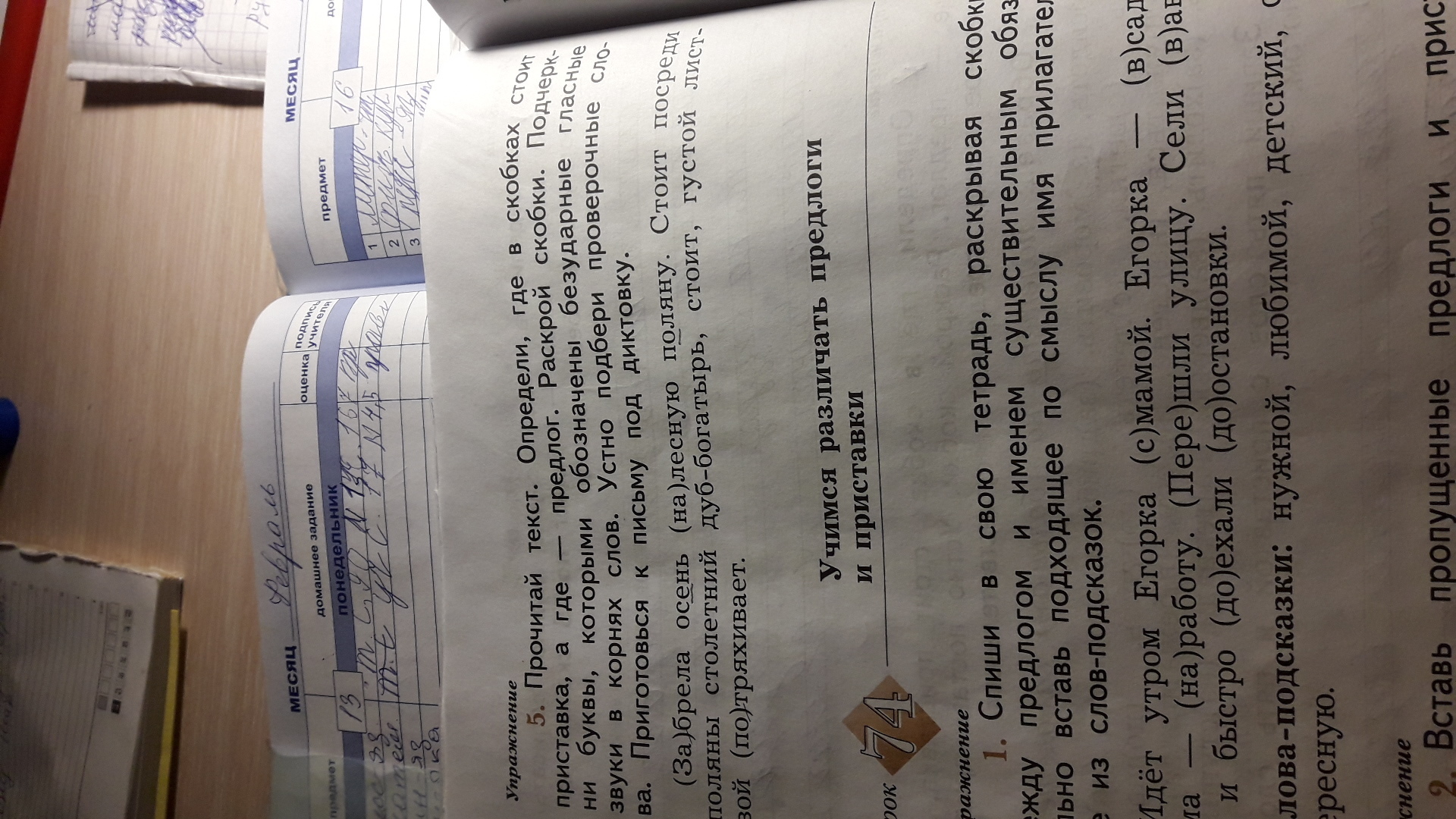 прочитай текст. определи, где в скобках стоит приставка, а где- предлог. раскрой скобки. подчеркни буквы , которыми обозначены безударными гласные звуки в корнях слов.устно подбери проверочные слова.приготовься к письму под диктовку. Помогите пожалуйста