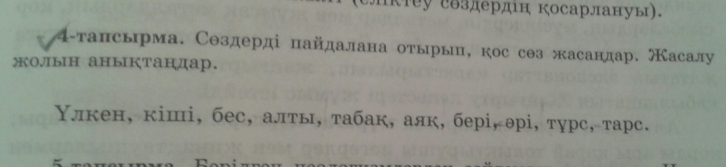 үлкен-кіші, бес-алты, табақ-аяқ, әрі-бері,тарс-тұрс