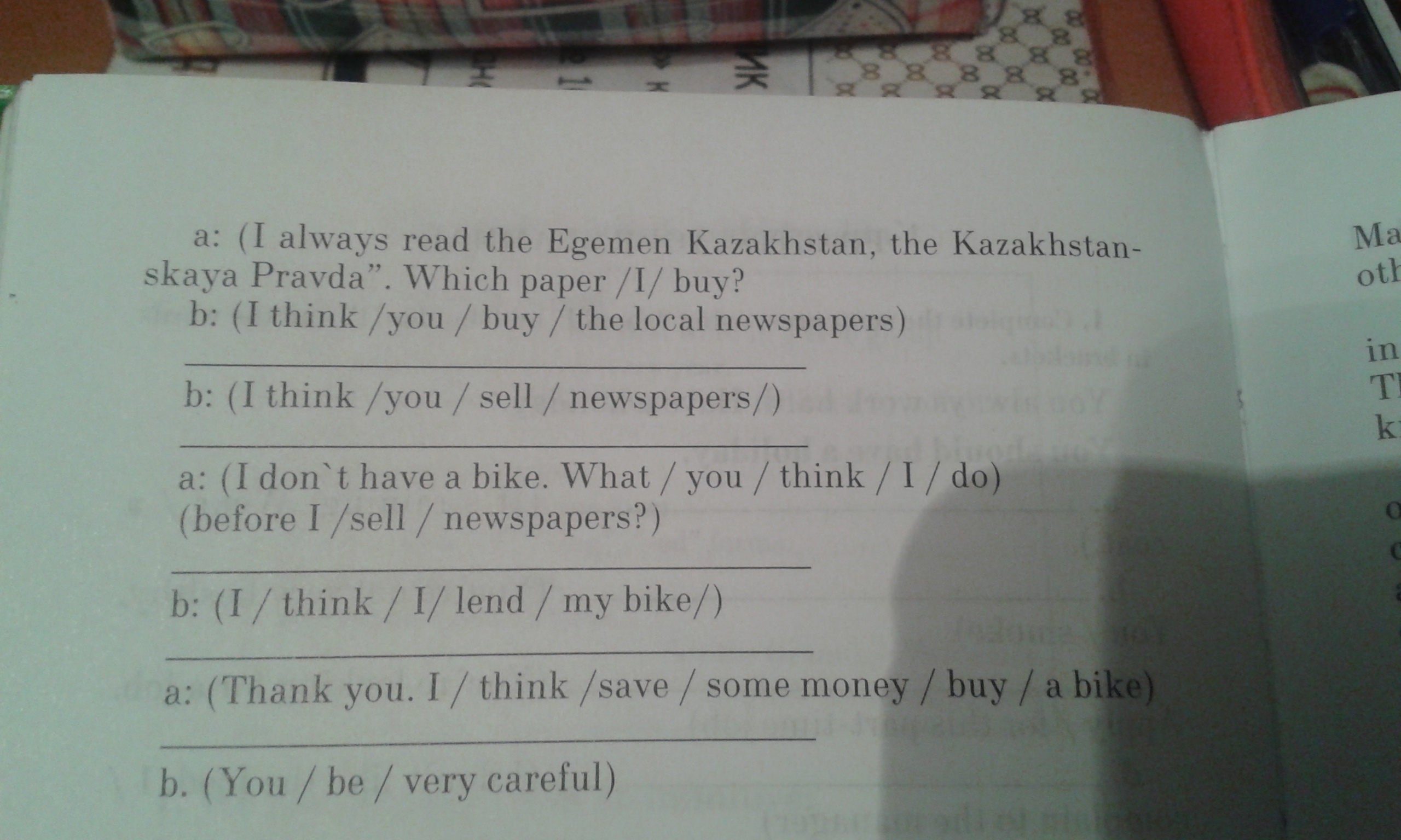 Задание: Write this conversation between two friends using the words in brackets. Put in do or should where required.