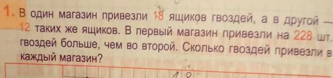 Ответ В первый магазин привезли 684 гвоздей, а во второй 456 гвоздей