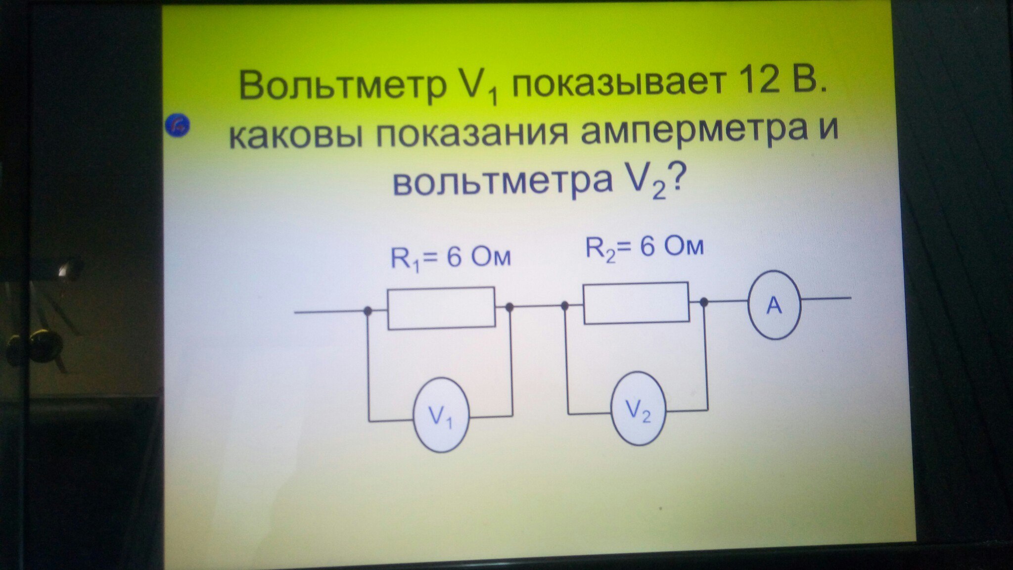 I1=12В/6Ом=2А