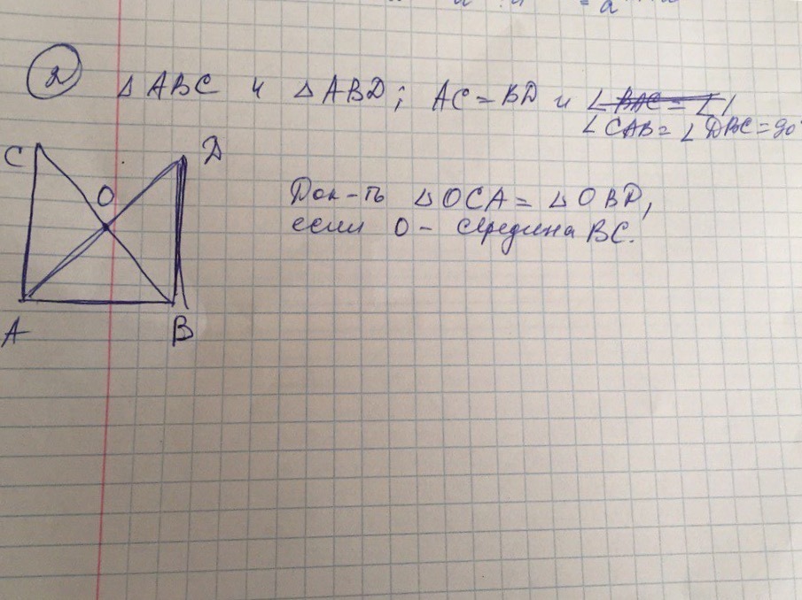 Треугольник ОСА= треугольнику OBD(COA=DOB как вертикальные, CO=OD, OA=OB, CA=DB по условию)