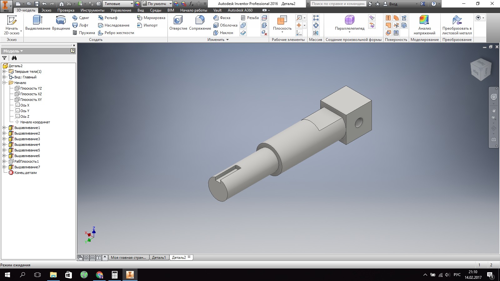 Помогите составить главный вид изображения по описанию его геометрической формы: деталь "Ось" образована сочетанием двуз соосно расположенных цилиндров различных диаметров и правильной четврехугольной призмы. В крайнем цилиндре выполнен паз (прорезь) . В цилиндре, соприкасающемся с призмой,-лыска. В противоположных гранях призмы -цилиндрические засверловки.