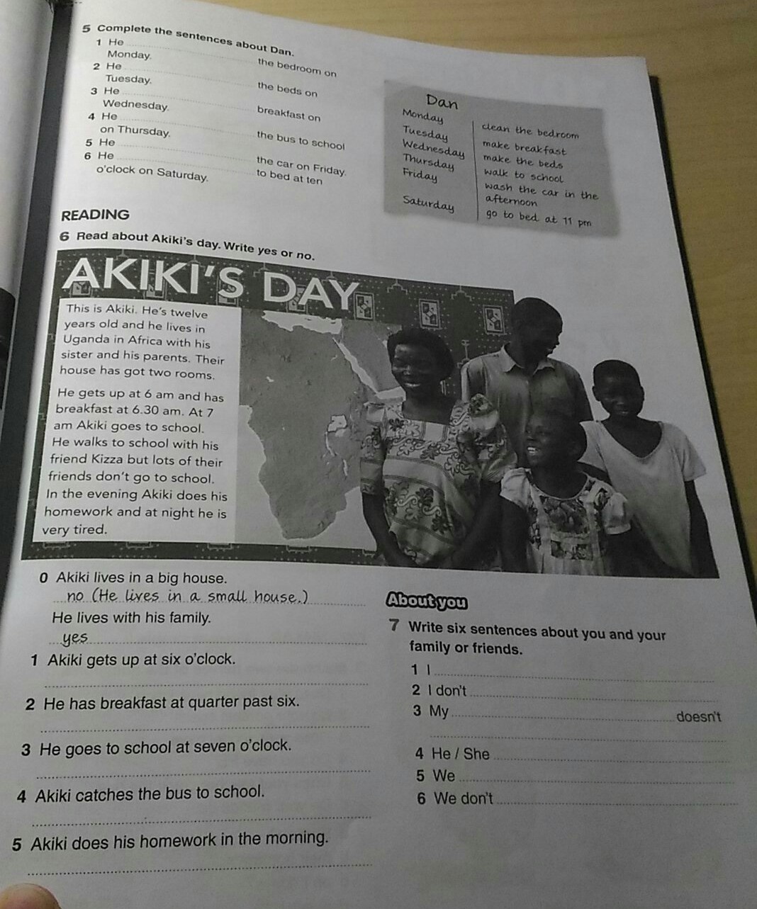 5no He does his homework in the evening
