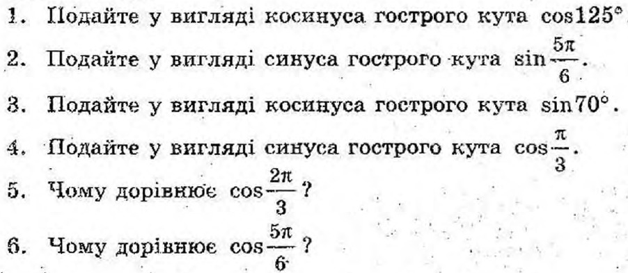 4. cos π/3 = cos(π/2 – π/6) = sin π/6