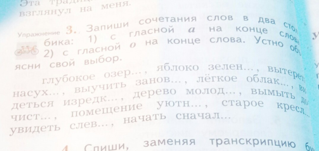 2 столбик глубокое озеро вытереть насухо выучит заново легкое облако видеться изредко вымыть начисто старое кресло а остальные с окончанием ое