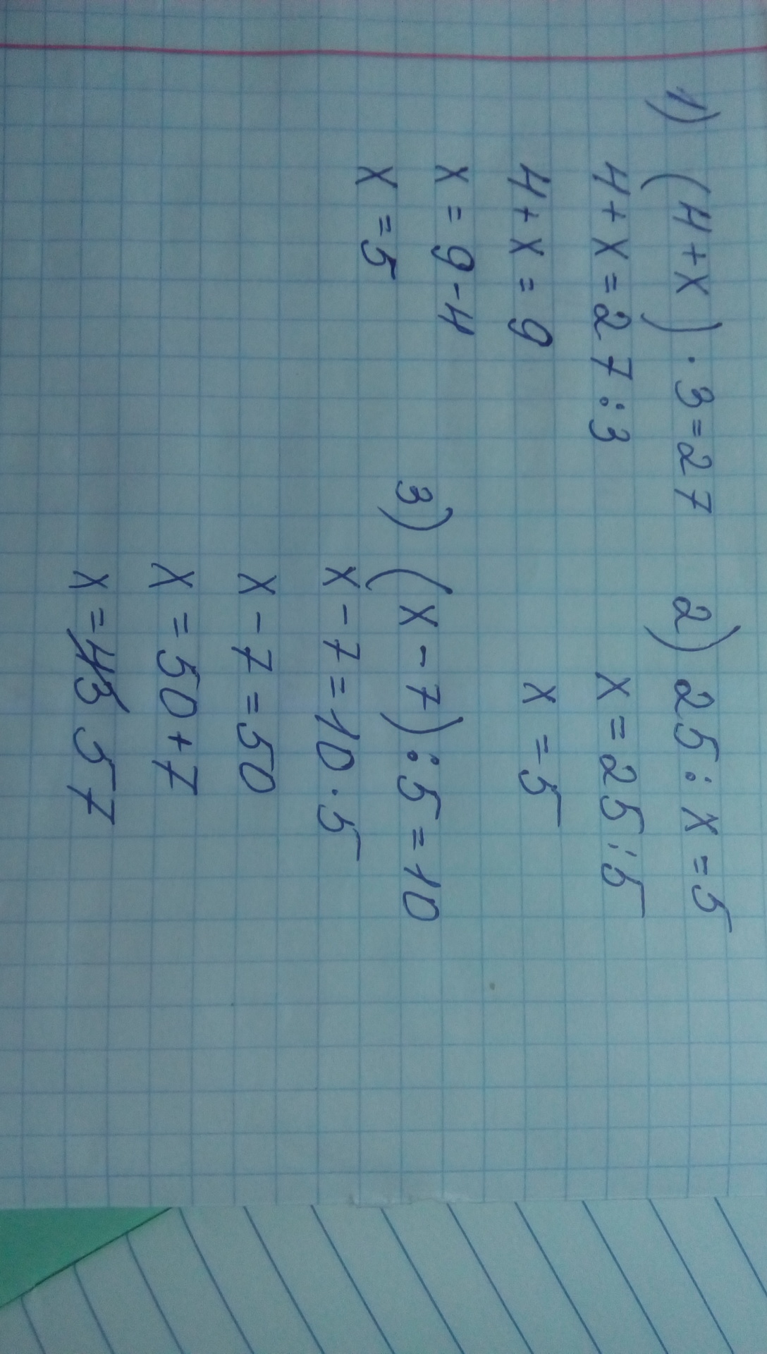 4+х=27:3