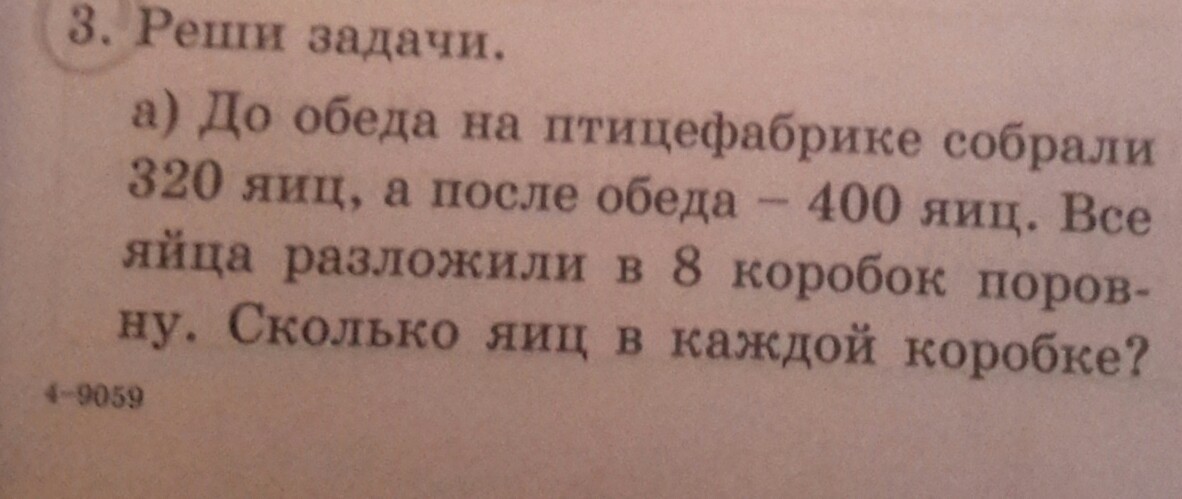 обед -320 яиц день 400 коробок 8 колво яиц -?