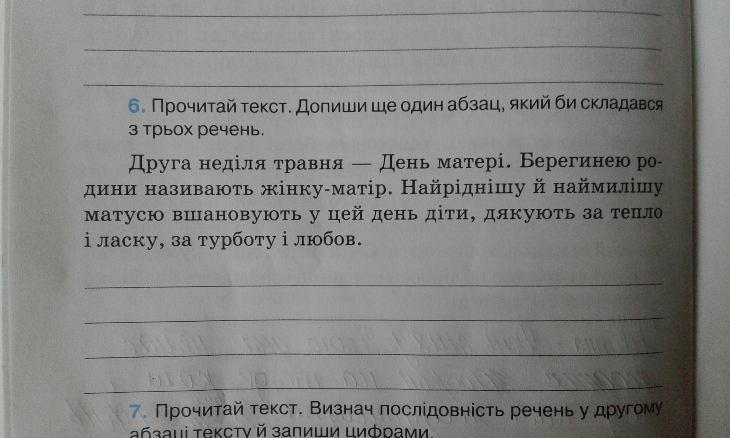 номер 6. Прочитай текст.Допиши ще один абзац,який би складався з трьох речень.