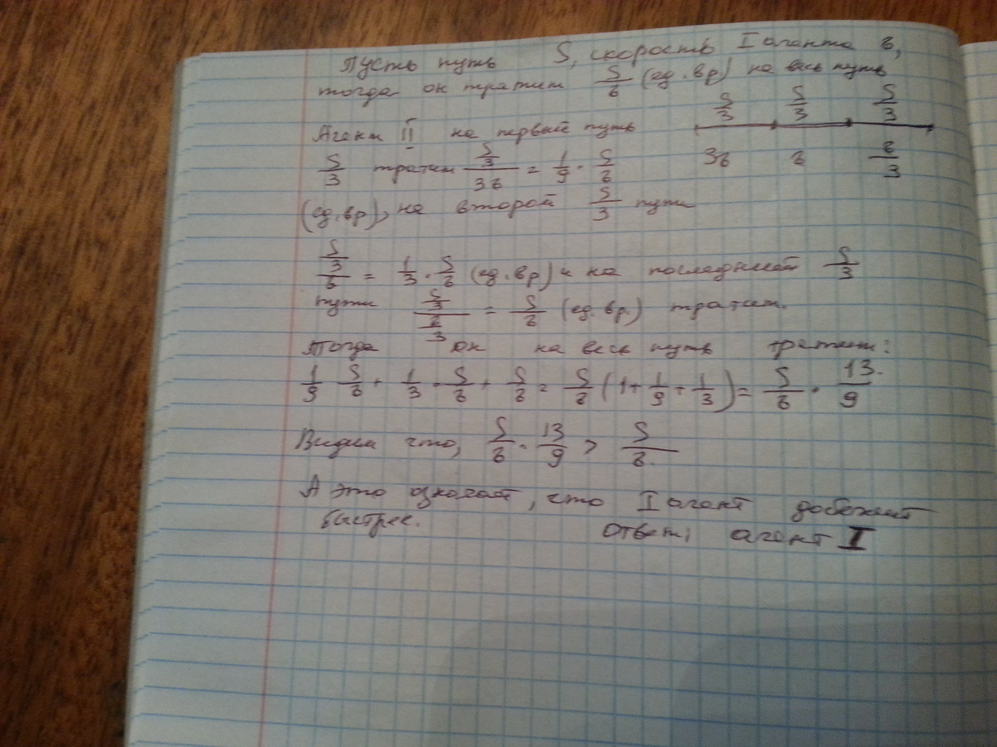 скорости агента 1, вторую треть пути бежит со скоростью, равной скорости агента