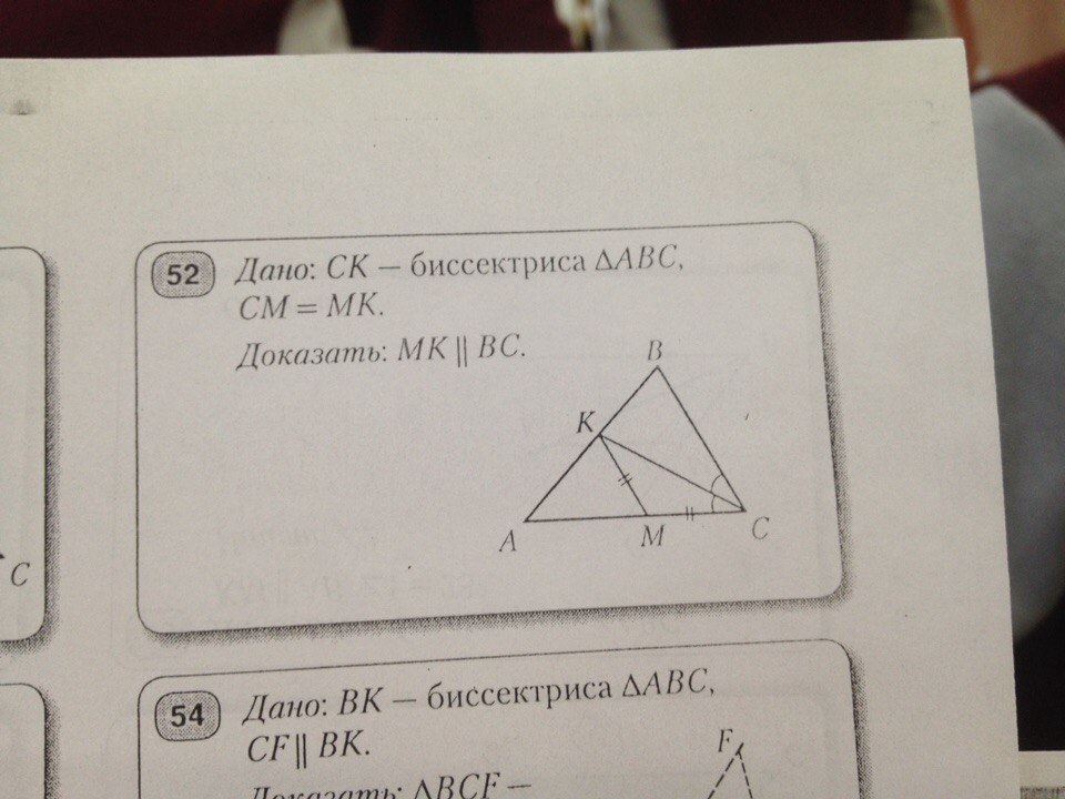 задача 1)дано: CK-биссектриса треугольника ABC; CM=MK; Доказать MK//BC