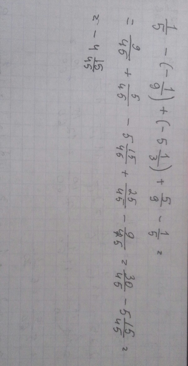-5целых 1/45+5/9= -4целых 7/15