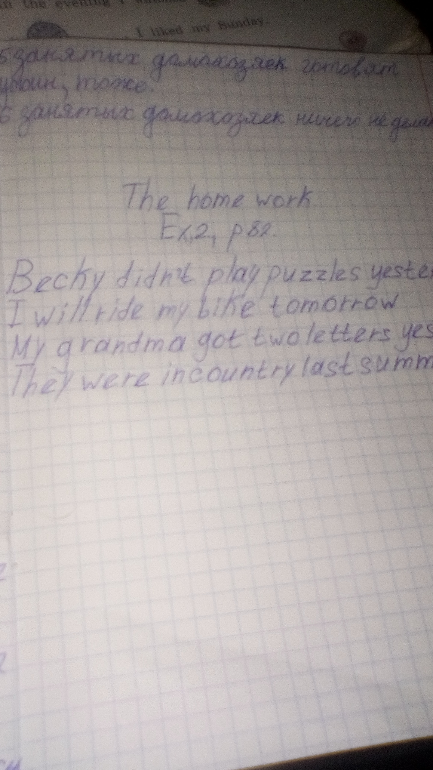 3)Моя бабушка получила два письма вчера.