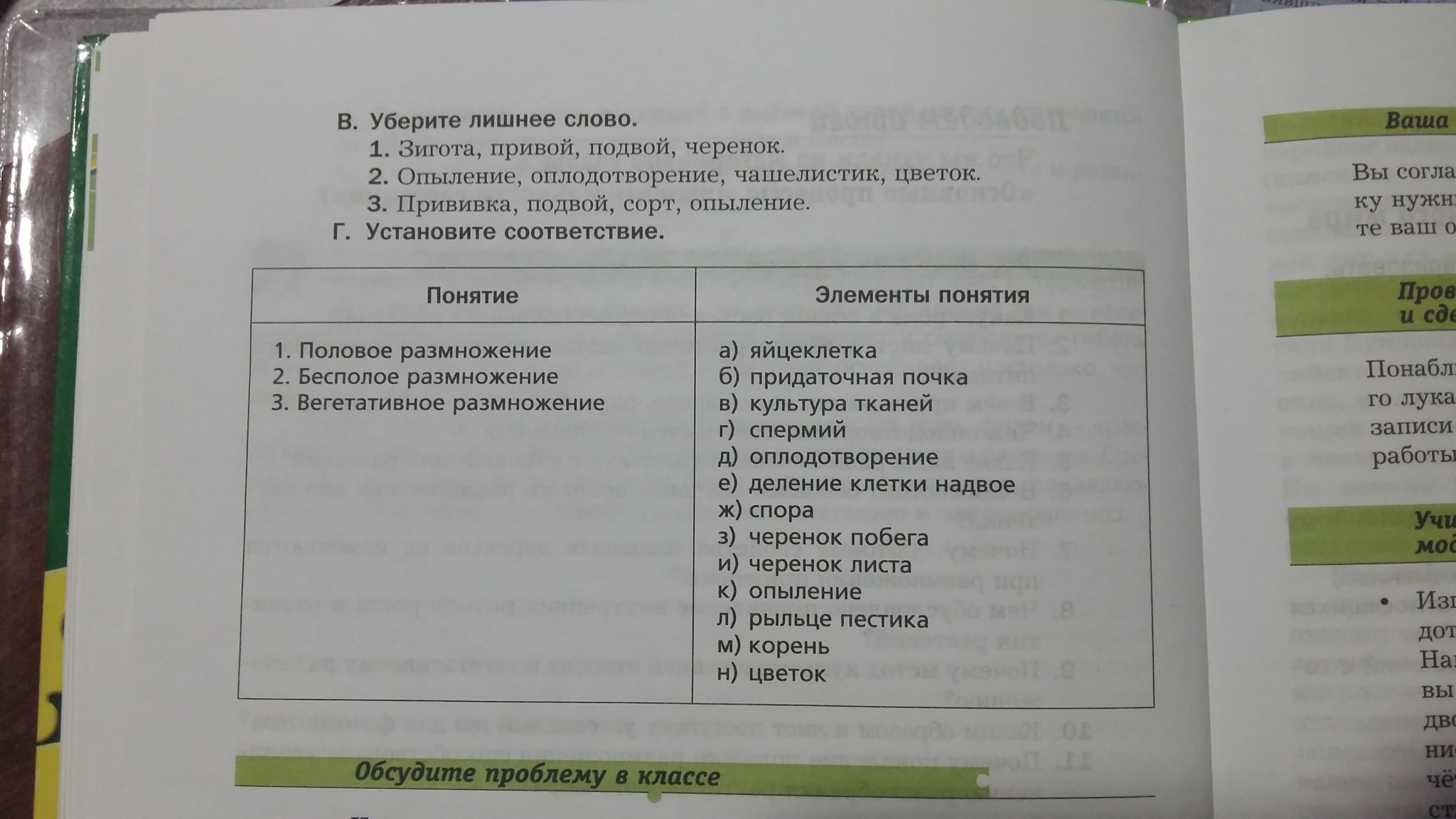 В.1)зигота(т.к. это понятие относиться к половому размножению) 2)чашелистик(т.к. он не участвует в размножении- является вегетативным органом) 3)опыление(данное понятие относиться к естественному способу размножения)
