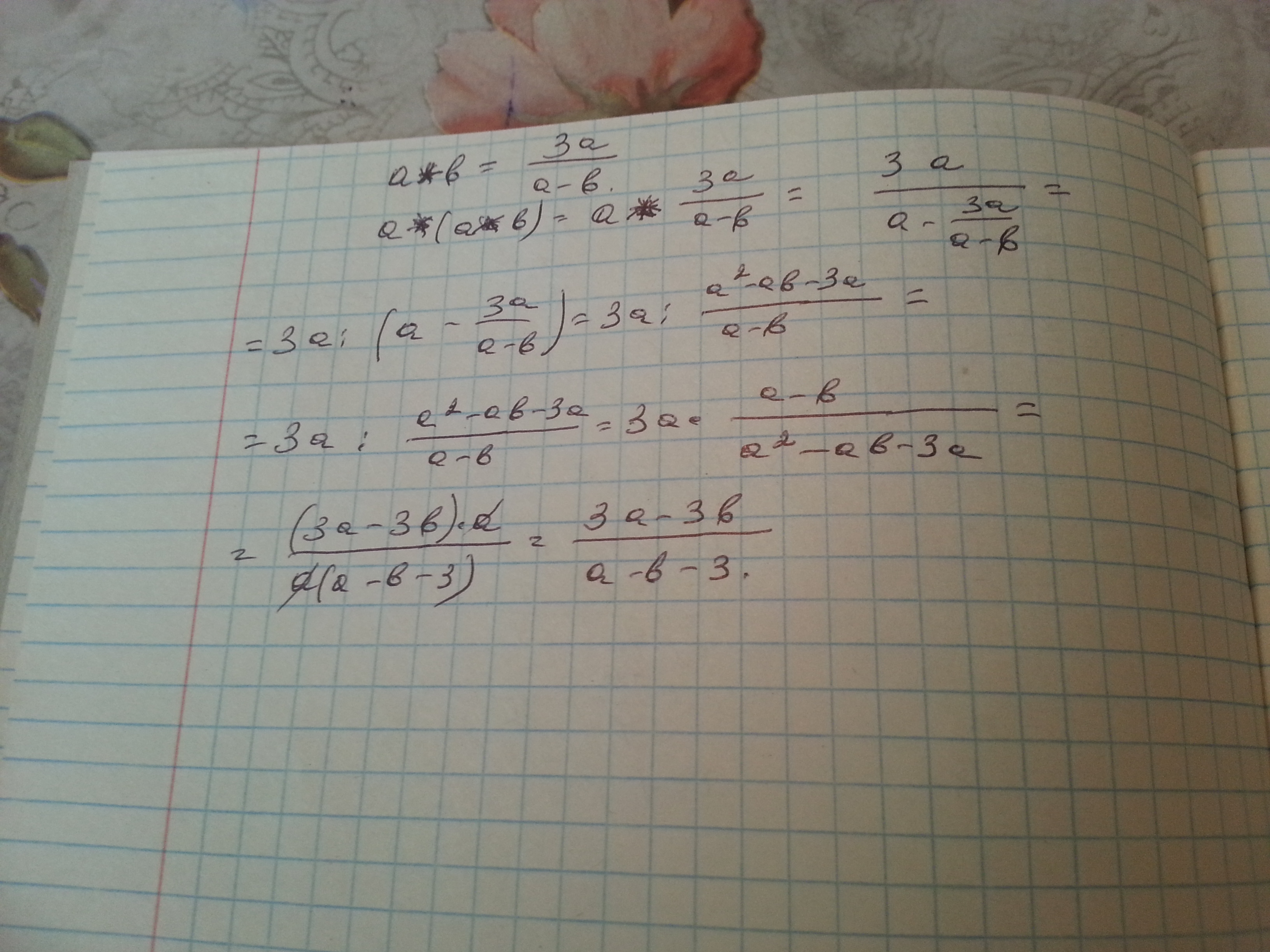 a*b=3a/a-b Определите значение a*(a*b), если a=2 ; b= 1/2