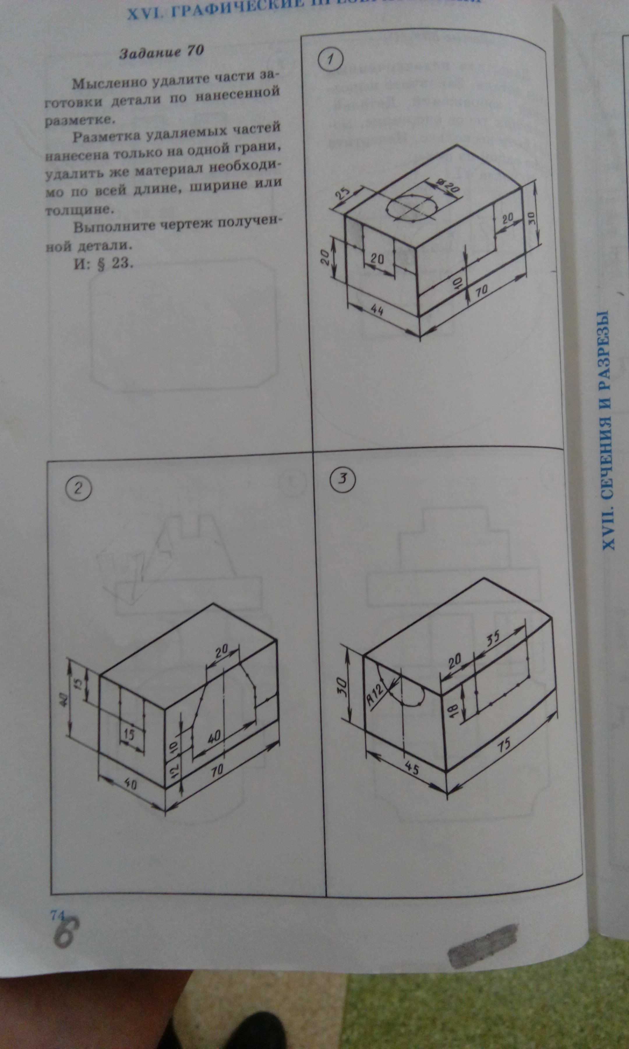 Разметка удаляемых частей нанесена только на одной грани, удалить же материал необходимо по всей длине, ширине или толщине.