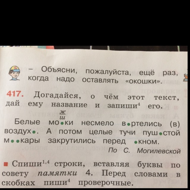 Белые моШки несмело вЕртелись в воздухе. А потом целые тучи пушИстой мОШкары закрутились перед Окном.