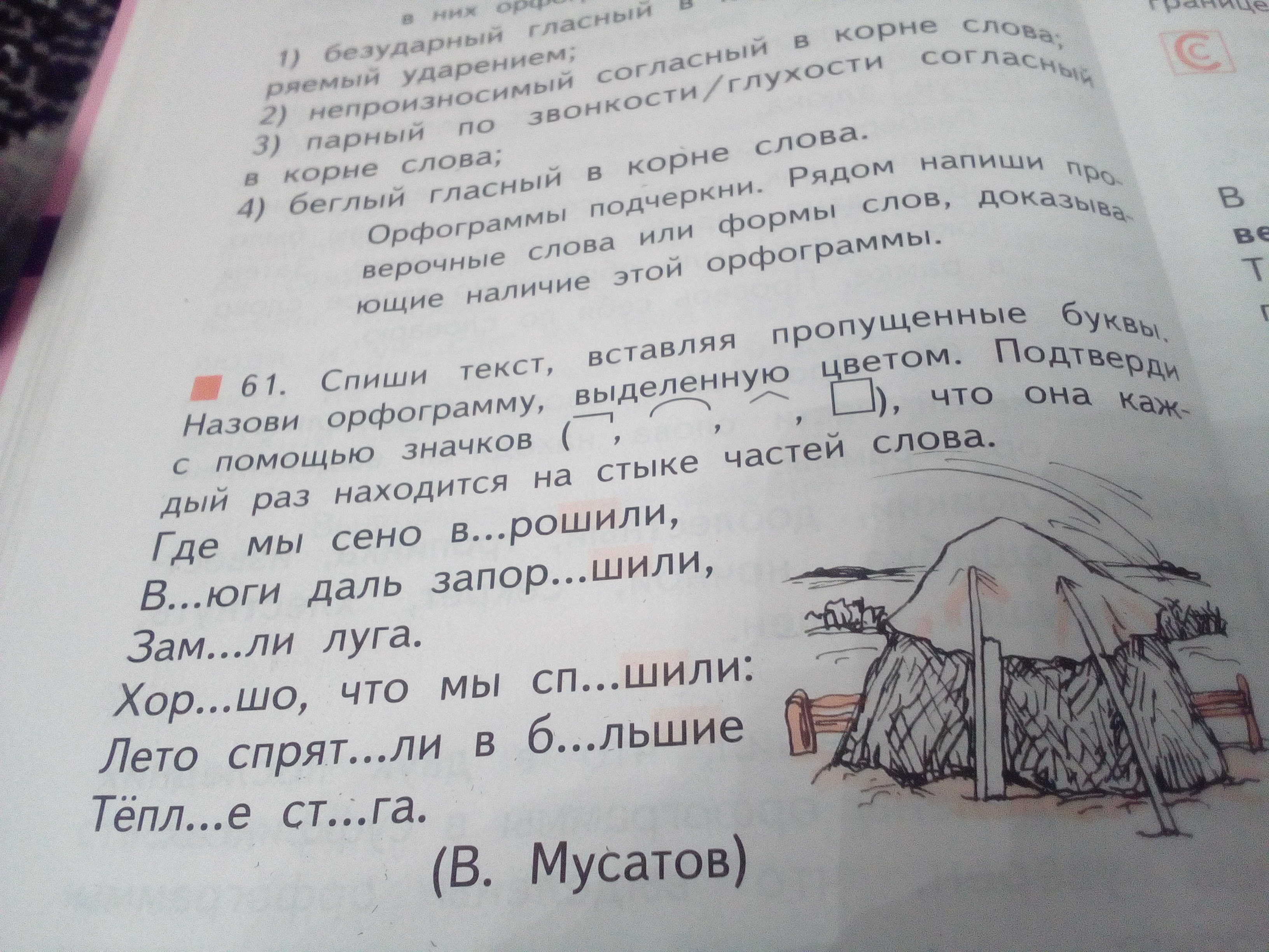 Где мы сено в(о)рошили, ( корень [ворош] + суффикс [и] + суффикс [л] + окончание [и]