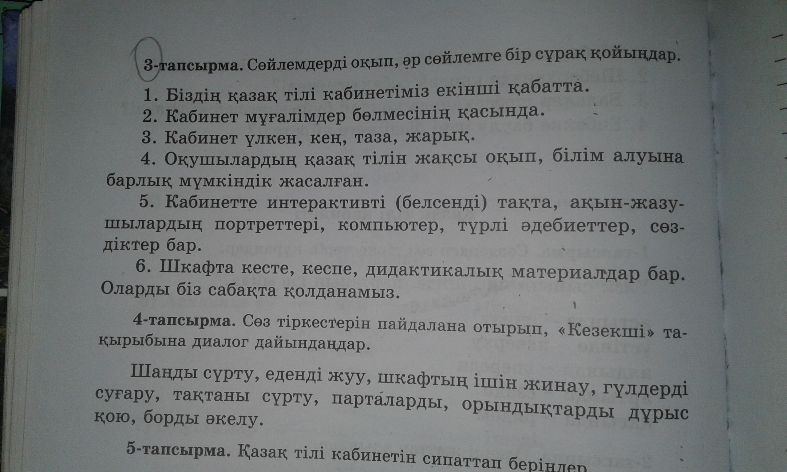5.кабинетте нелер бар ?