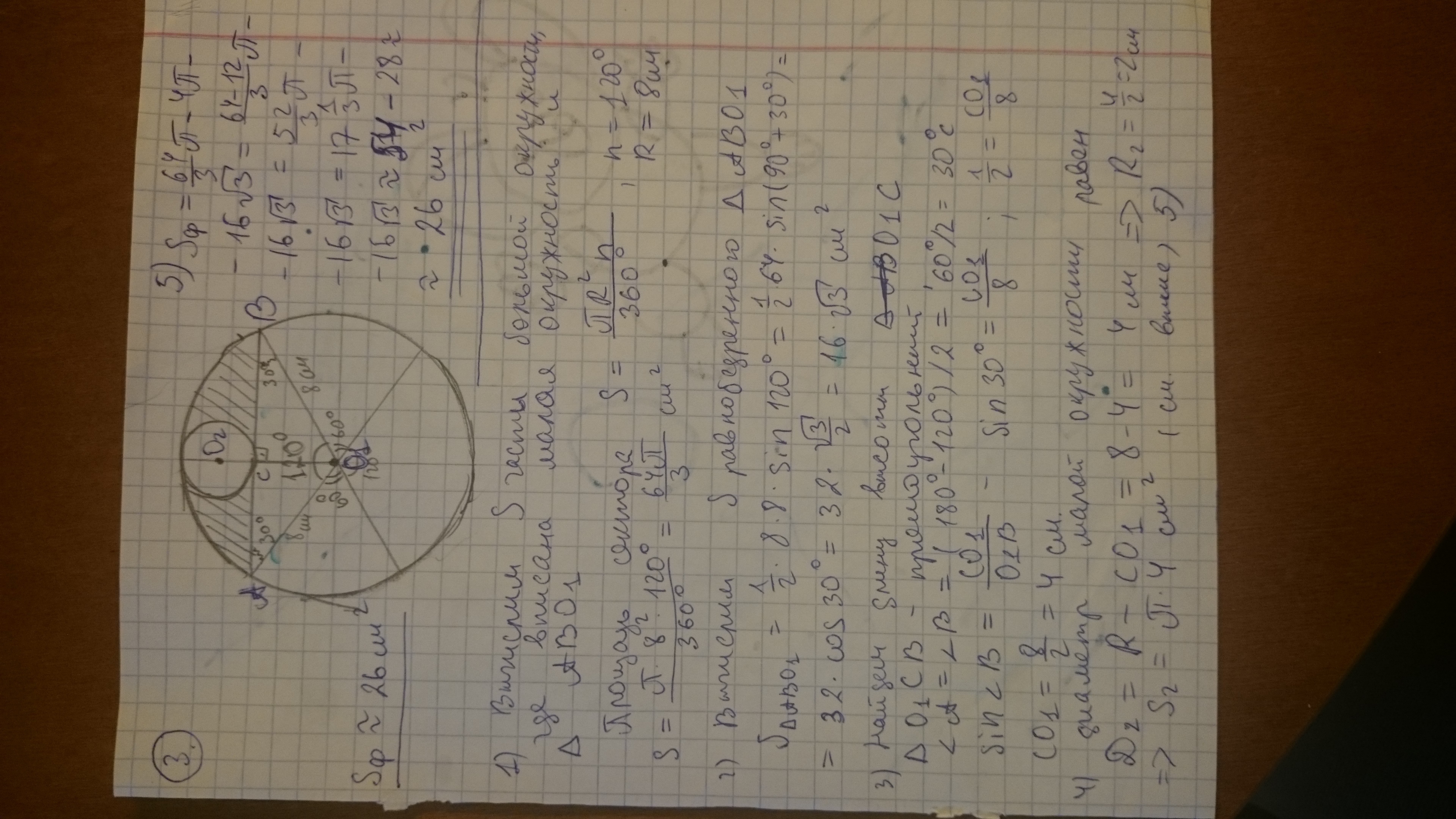 S части сектора над трекгольником равна S1 - Sт= прим. 28-18= 10 см^2;