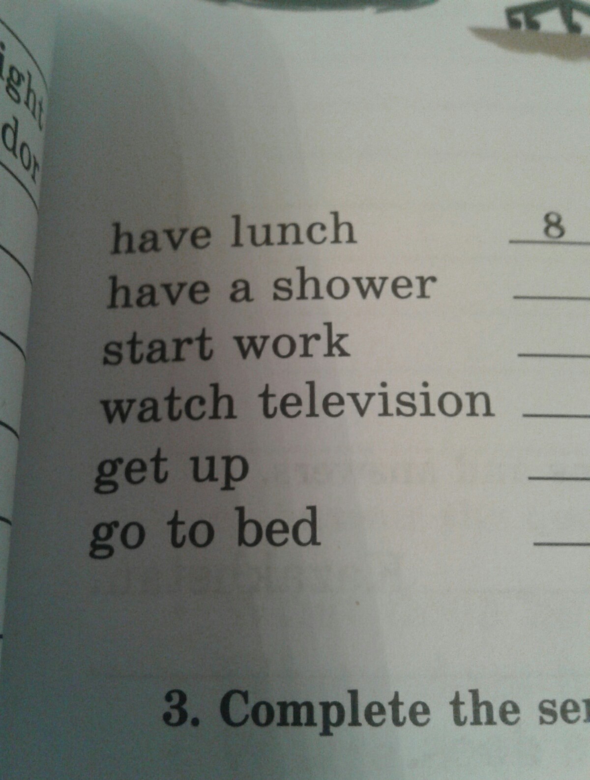 Do you want to have lunch? Do you have a shower? We usually start work at 8 o'clock. I want to watch television to get up at 7 o'clock If you are tired, go to bed.
