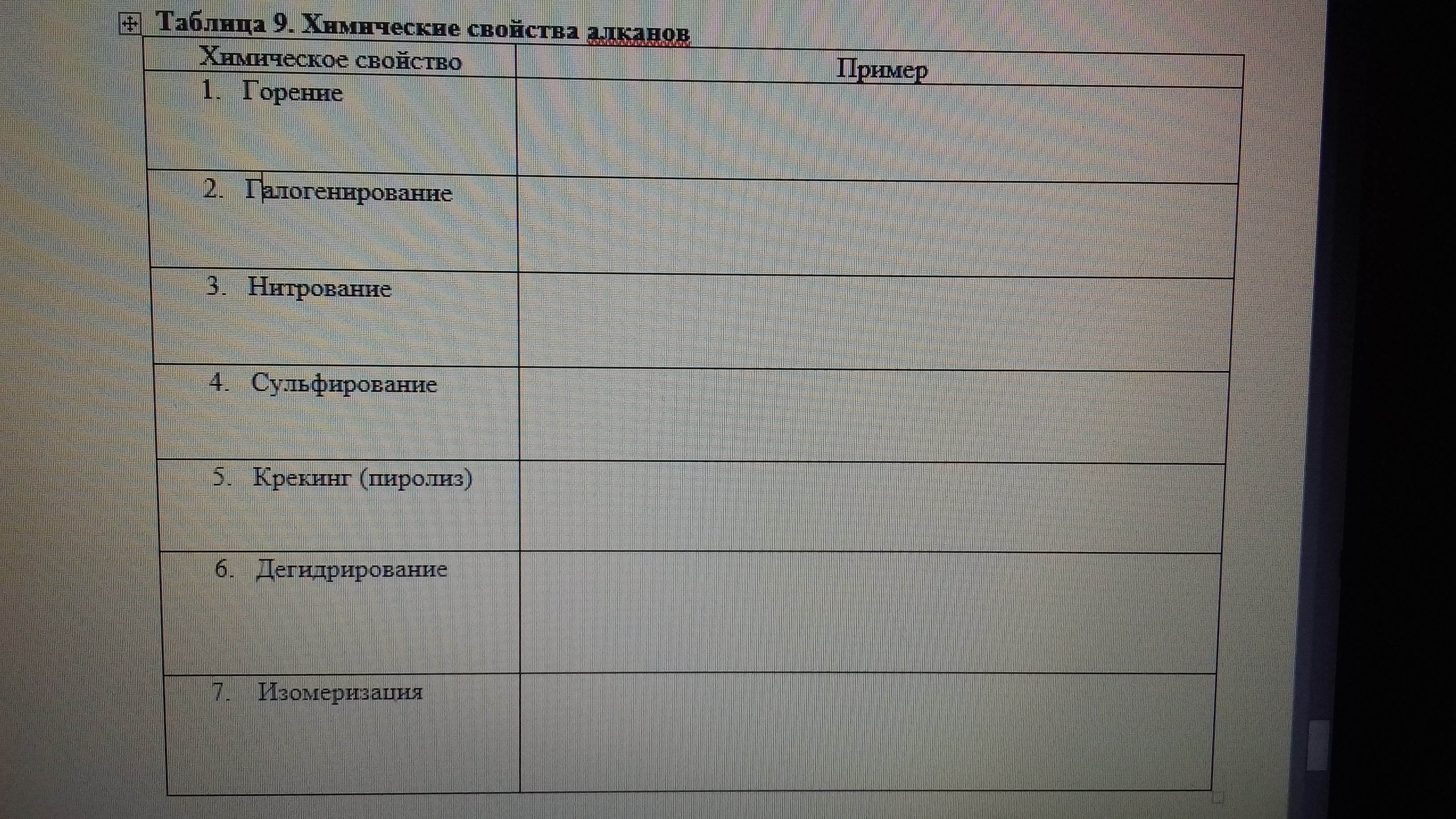 таблица по химии хим.св-ва алканов