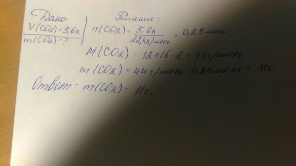 n(CO2)=5,6 л / 22,4 л/моль = 0,25 моль