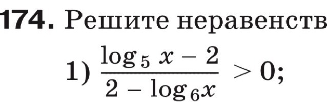 frac{log_5x-2}{2-log_6x}  textgreater  0; ; ,; ; ODZ:; ; x textgreater  0\\ left { {{log_5x-2 textgreater  0} atop {2-log_6x textgreater  0}} right.  ; ; ili; ; left { {log_5x-2 textless  0} atop {2-log_6x textless  0}} right. \\1); ;  left { {{log_5x textgreater  2} atop {log_6x textless  2}} right. ; ;  left { {{x textgreater  25} atop {x textless  36}} right. ; ; to ; ; ; xin (25,36)\\2); ;  left { {{log_5x textless  2} atop {log_6x textgreater  2}} right. ; ;  left { {{x textless  25} atop {x textgreater  36 }} right. ; ; to ; ; xin varnothing \\Otvet:; ; xin (25,36); .