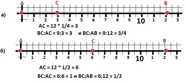 смотри в первом случае C отмечаешь на 3см а во втором на 2см