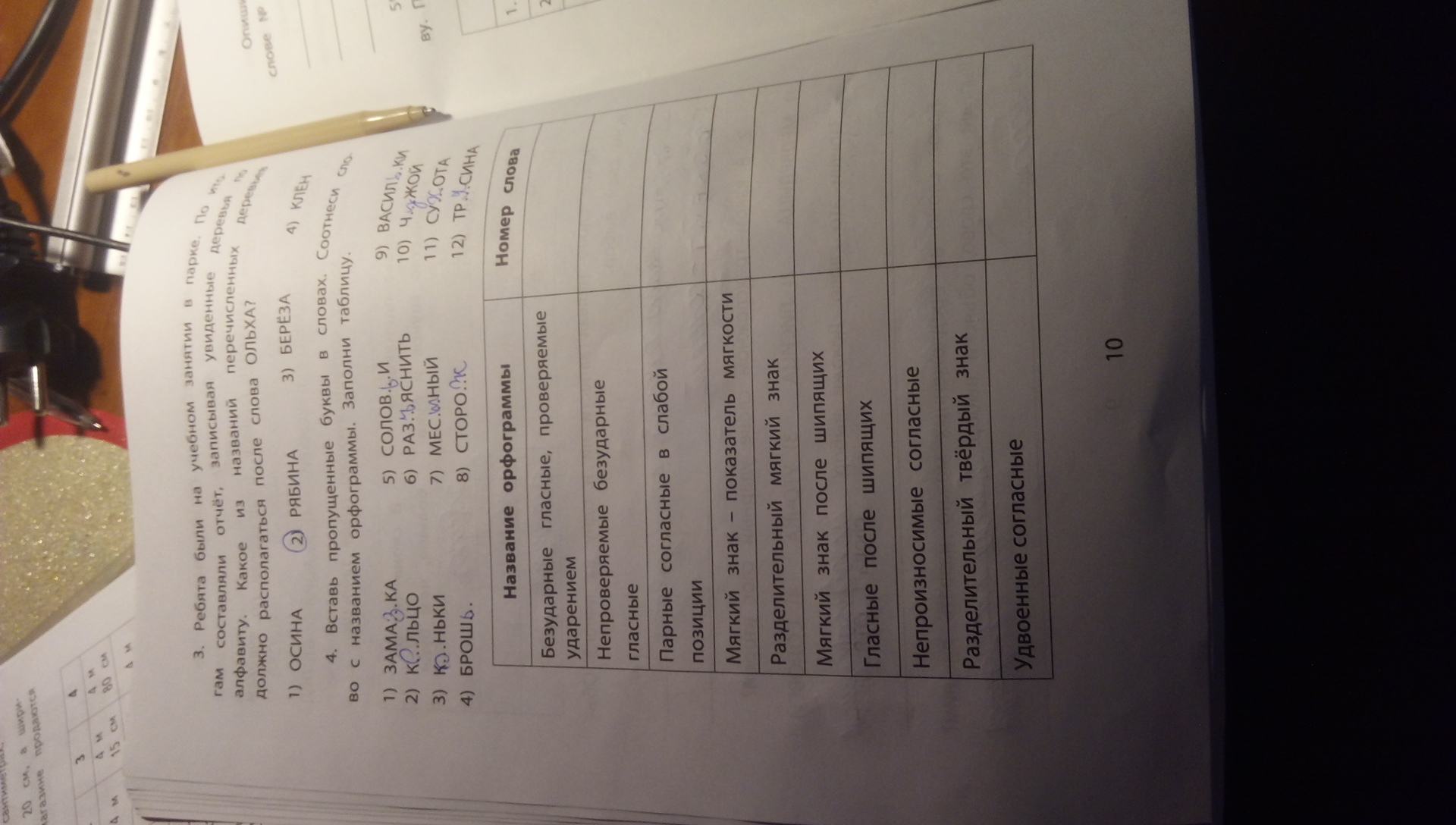 Вставь пропущенные буквы в словах. Соотнеси слова с названием орфограммы. Заполни таблицу. No 4