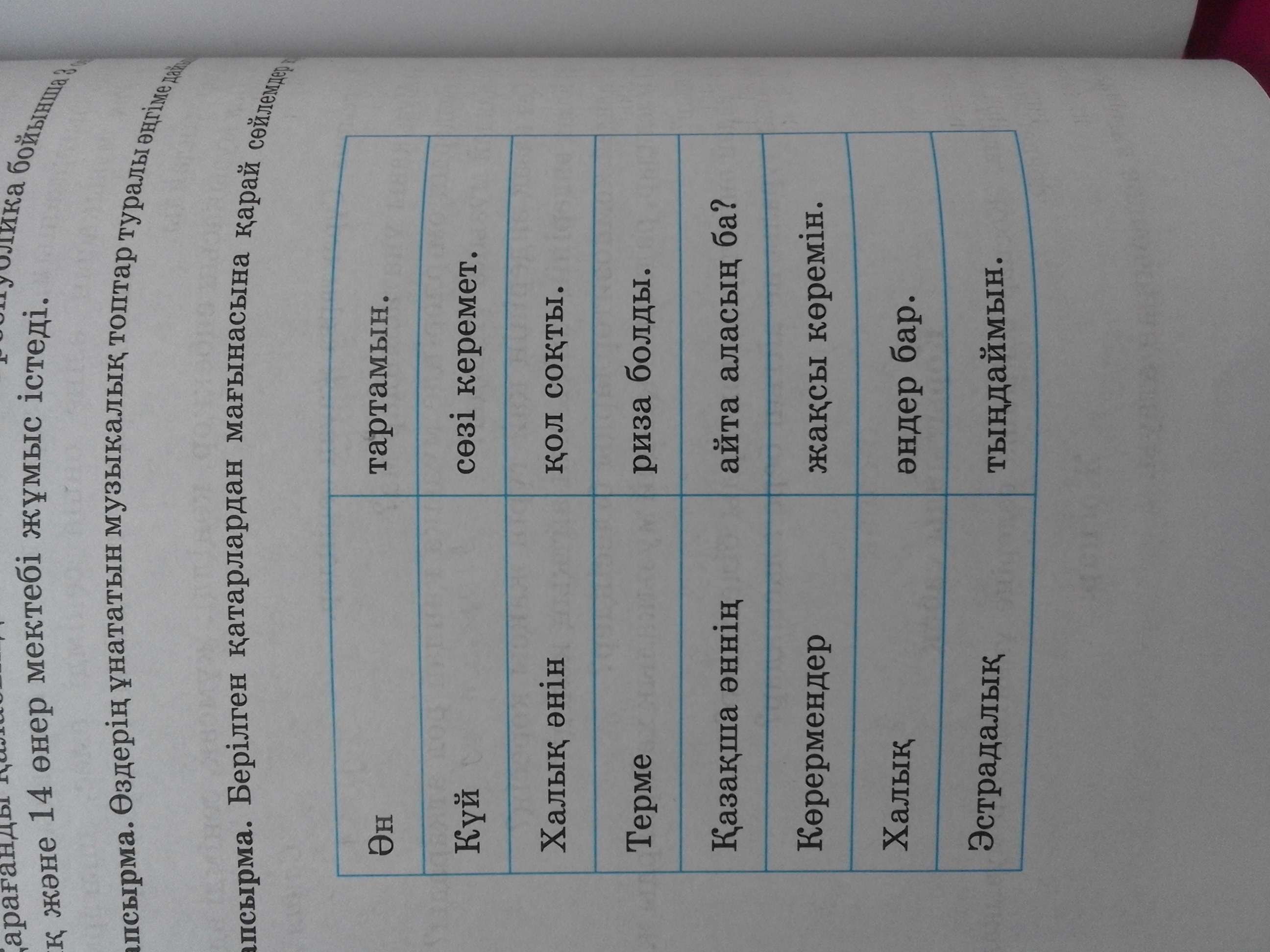 Сен ан айта аласын ба? Мен куй тартамын. Мен халық анин жаксы коремин. Мен терме тындаймын. Казакша аннiн созi керемет. Корермендер кол сокты. Халык риза болды. Эстрадалык андер бар.