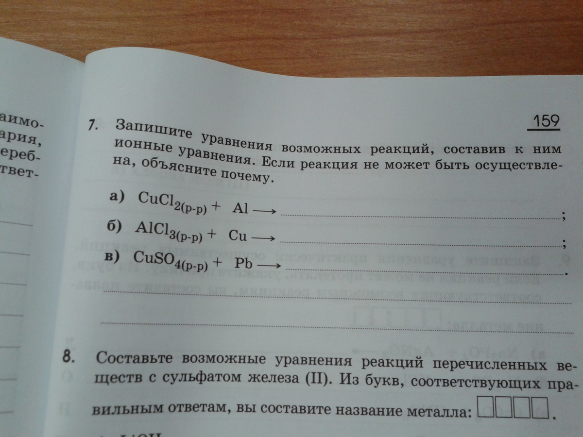 1)3CuCl2(p-p) + 2Al ->2AlCl3+3Cu