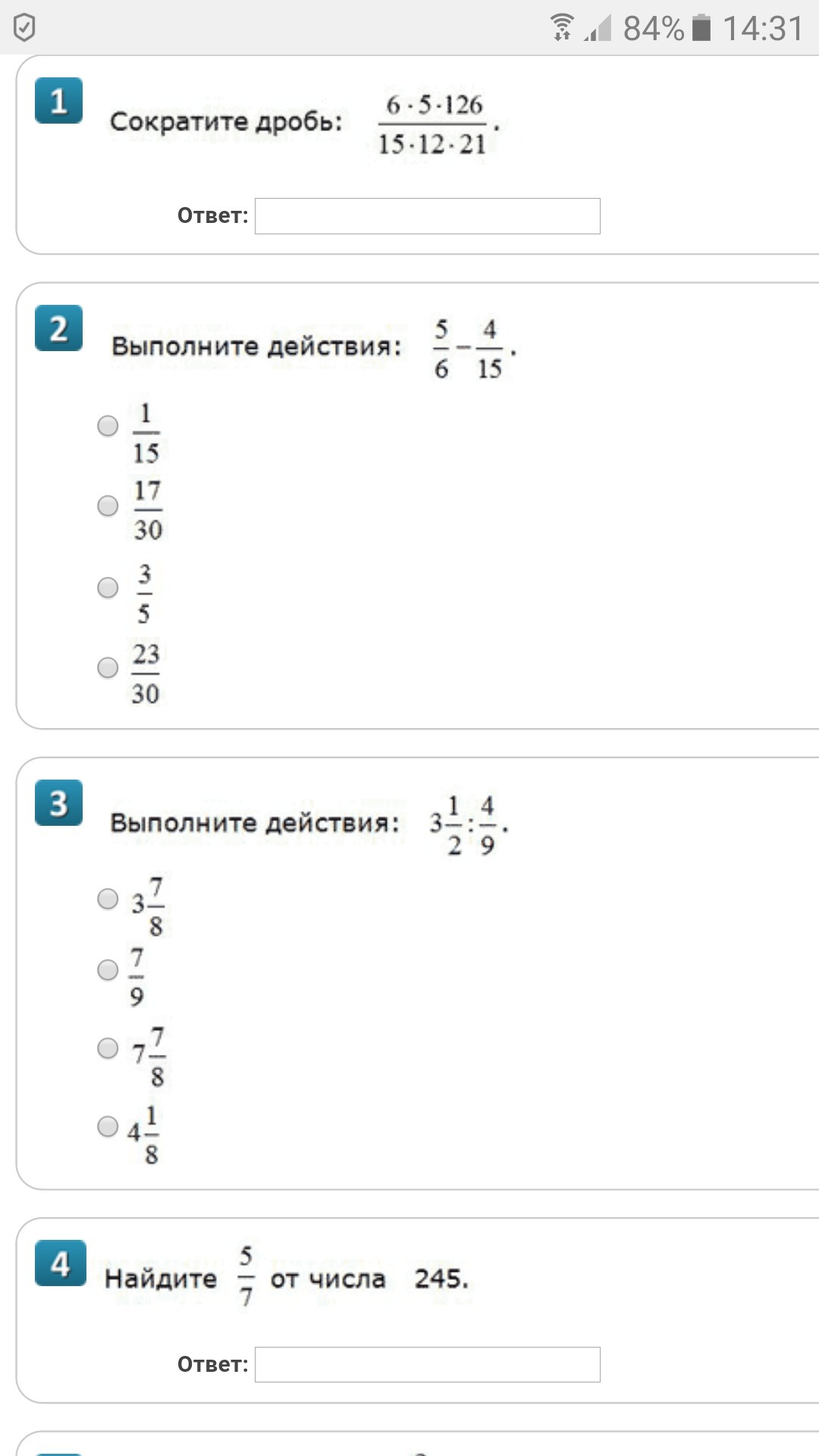 4)  245* frac{5}{7} =35*5=175